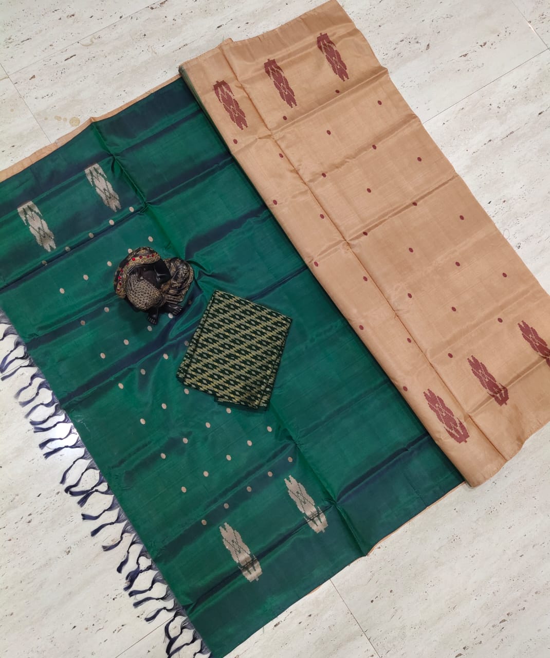 Deeply rooted in tradition, these sarees showcase bold zari borders and classic Tamil designs. They are perfect for bridal ceremonies and sacred rituals. Woven to embody elegance passed down through the ages.